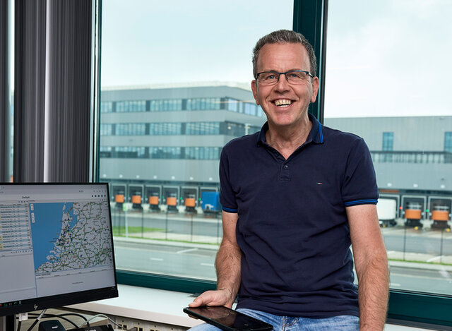 Backoffice manager Gerrit Bosman laat het routenetwerk van Bentvelzen Transport zien.